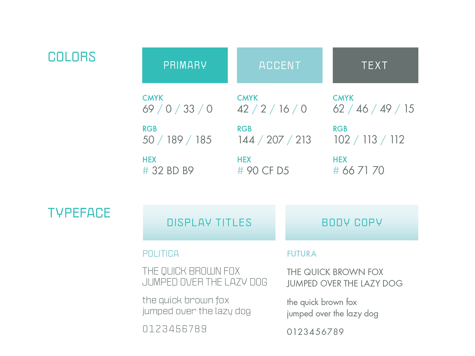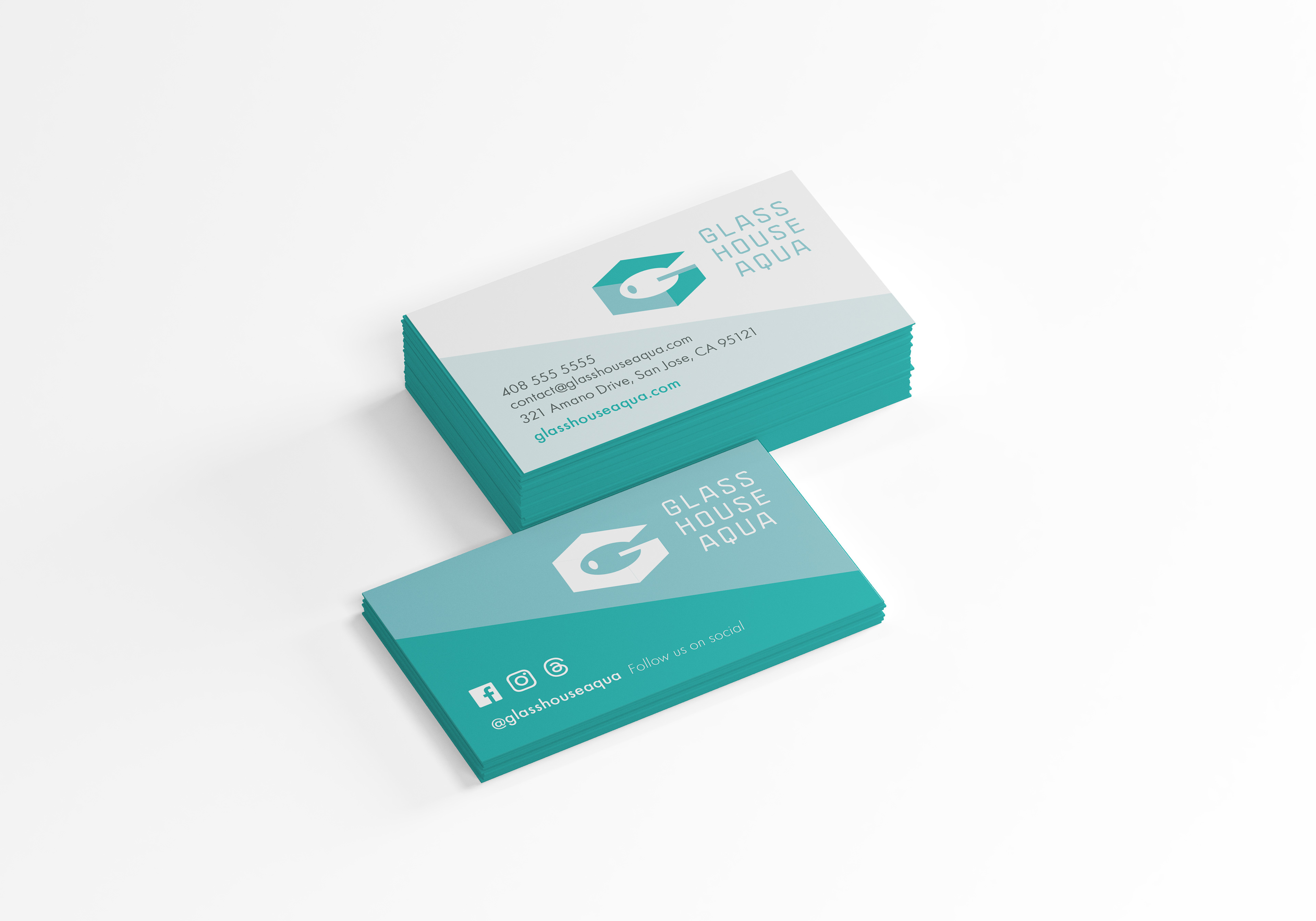 Brand colors and typeface. The teal colors are similar to the color of the glass edges in rimless low iron aquarium tanks.